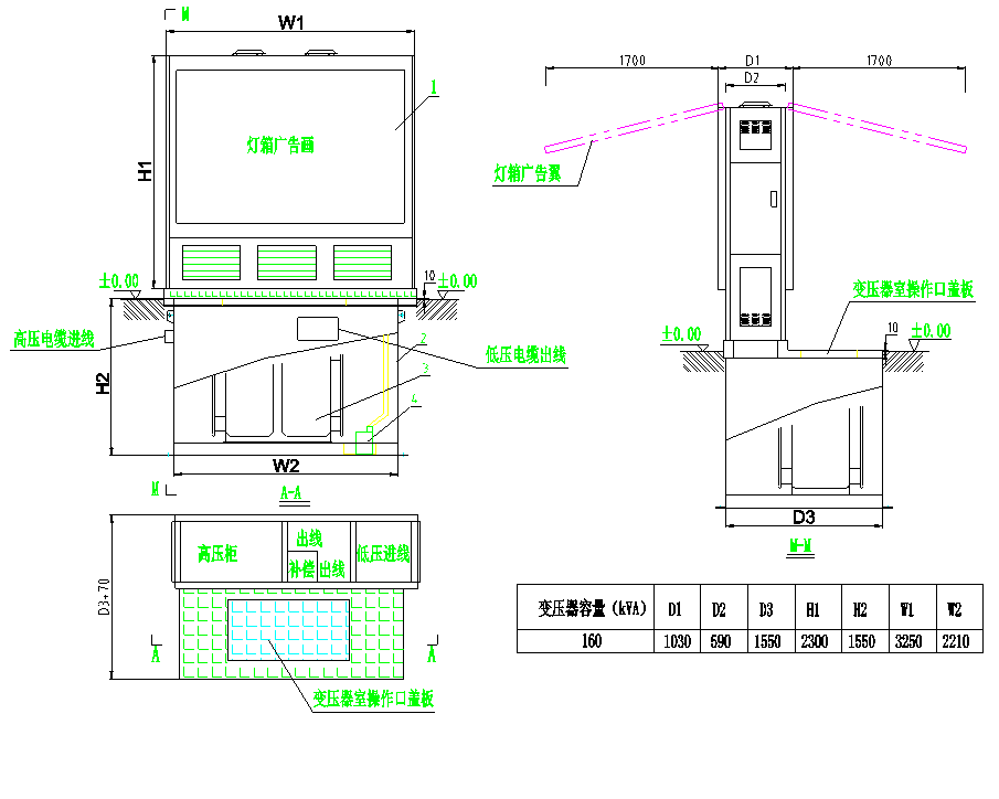 【組成部分】:地埋式箱變主要由地埋式變壓器和廣告燈箱式的戶外開關柜設備組成。